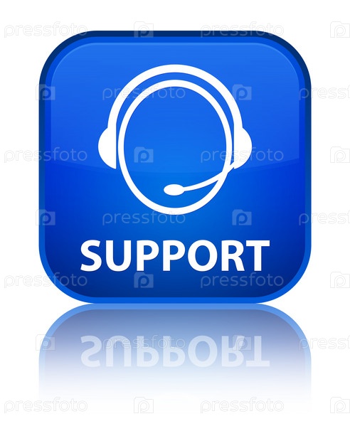 Поддержка (икона обслуживания клиентов) специальная синяя квадратная кнопка