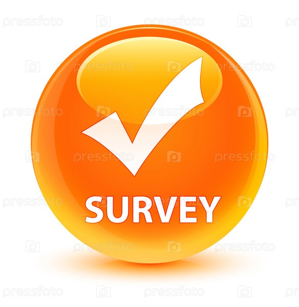 Опрос (икона проверки) оранжевая круглая кнопка