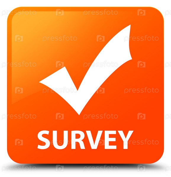 Опрос (икона проверки) оранжевая квадратная кнопка