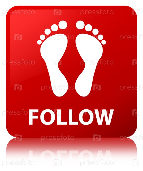 Следуйте (икона отпечатков) красная квадратная кнопка