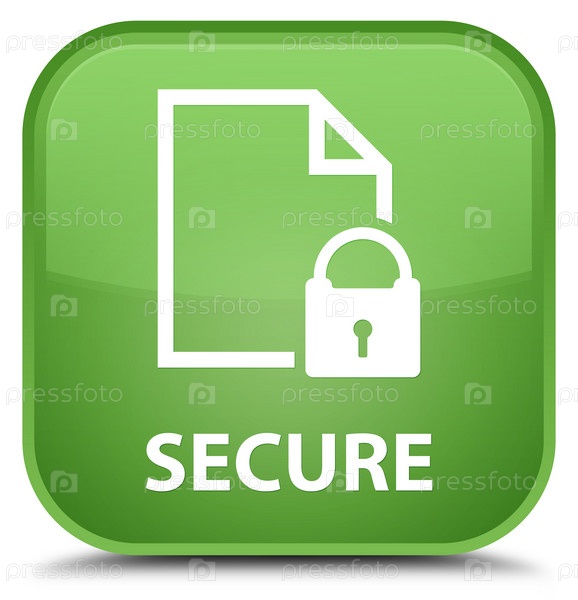 Безопасно (икона замка на странице документа) специальная мягкая зеленая квадратная кнопка