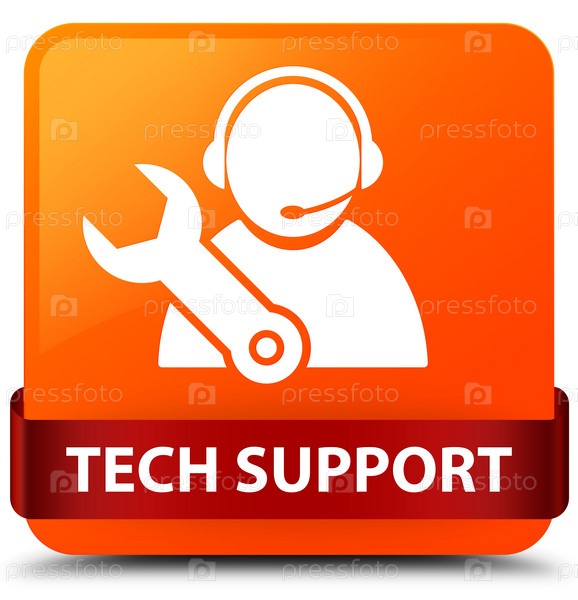 Техническая поддержка оранжевая квадратная кнопка красная лента посередине
