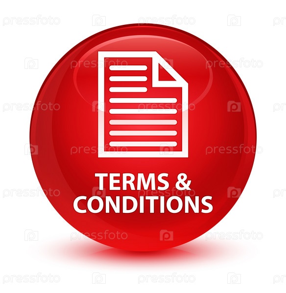 Условия и положения (икона страницы) стеклянная красная круглая кнопка
