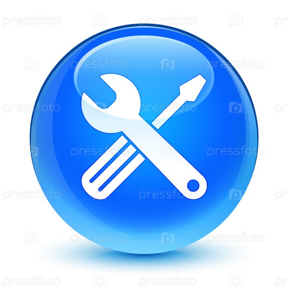 Иконка инструментов стеклянный синий голубой круглый кнопка
