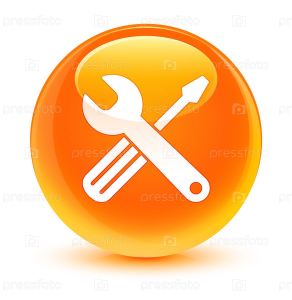 Икона инструментов стеклянная оранжевая круглая кнопка