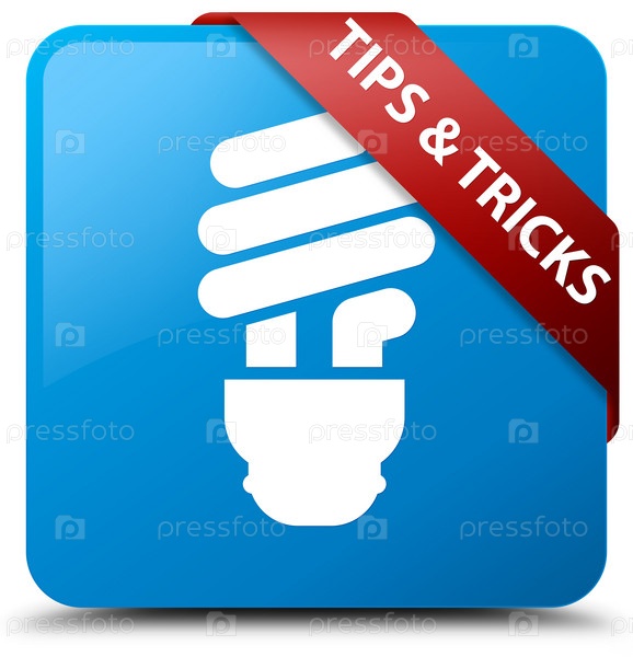 Советы и трюки (икона лампочки) синий синий квадратный кнопка красная лента в углу