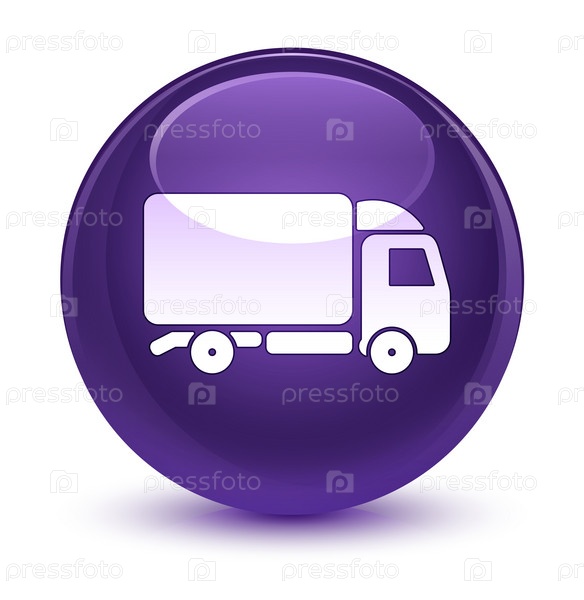 Икона грузовика стеклянная фиолетовая круглая кнопка
