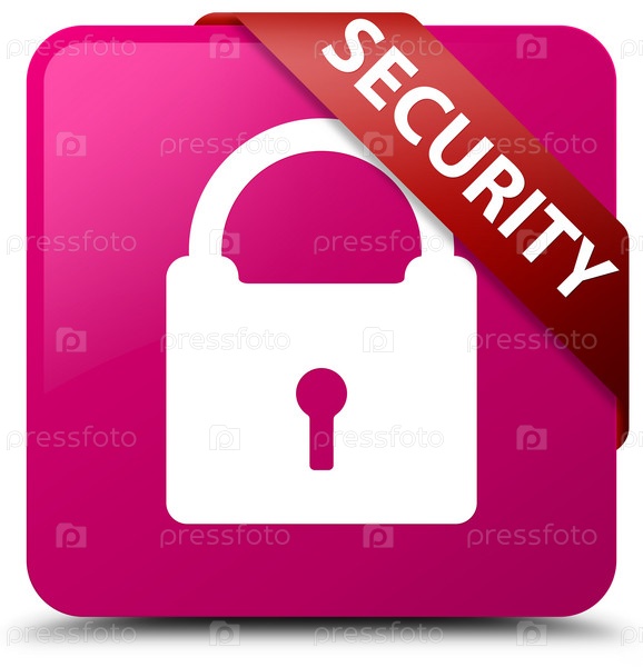 Безопасность (икона замка) розовая квадратная кнопка красная лента в углу