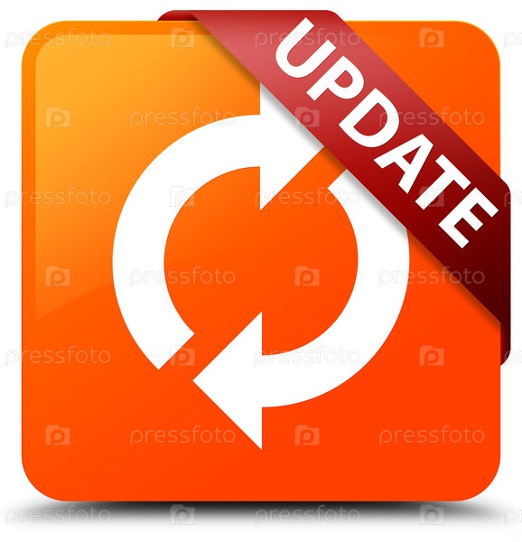 Обновление оранжевой квадратной кнопки красной ленты в углу