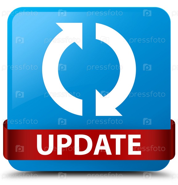 Cyan синий квадратный кнопка красная лента в середине Update Blue square button red ribbon in the middle