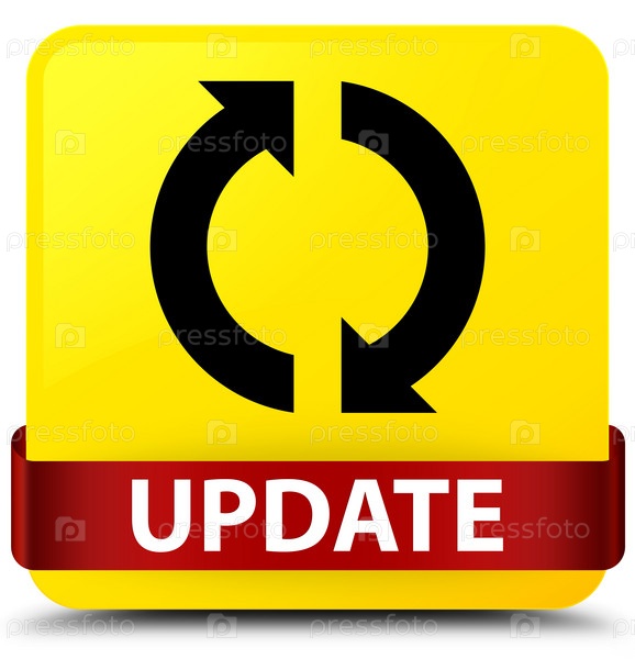 Желтая квадратная кнопка красная лента посередине Update