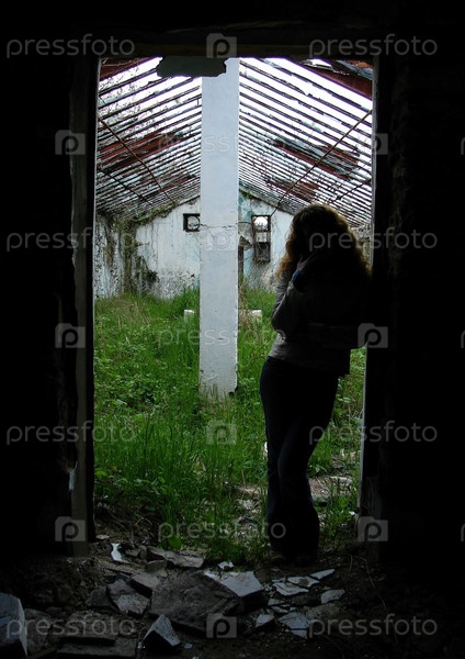Силуэт девушки в заброшенном доме