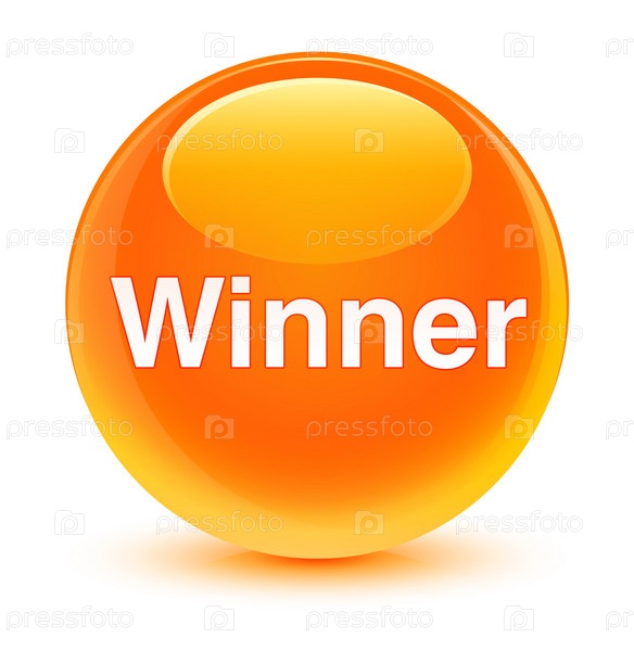 Победитель стеклянная оранжевая круглая кнопка
