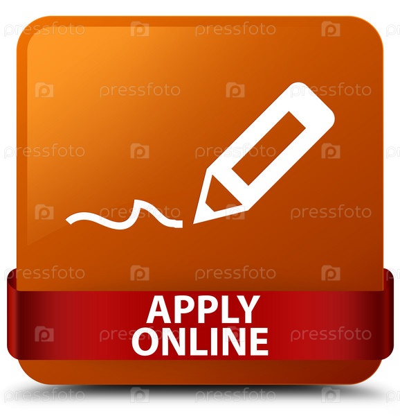 Apply online (edit pen icon) коричневая квадратная кнопка красная лента посередине