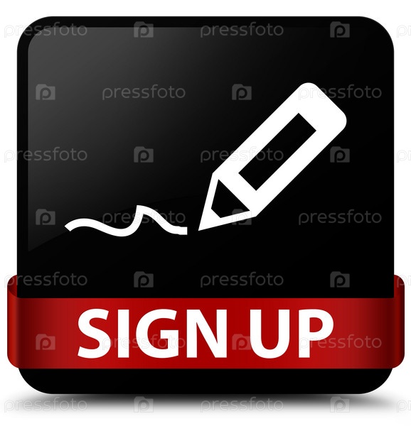 Зарегистрируйтесь черный квадратный кнопка красная лента посередине