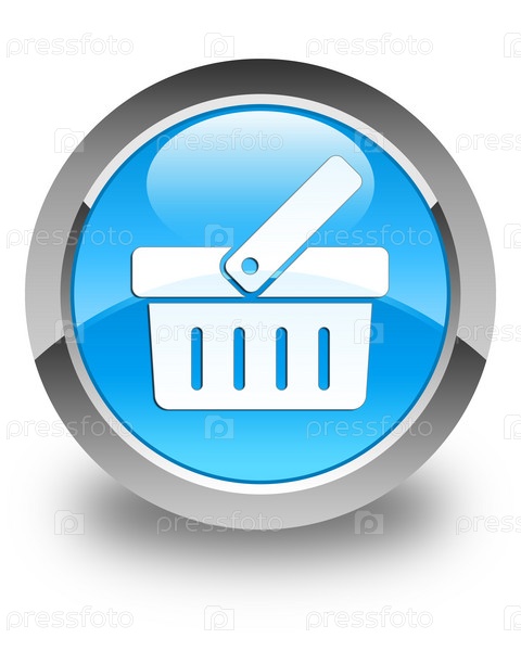 Икона корзины покупок блестящая цыановая синяя круглая кнопка