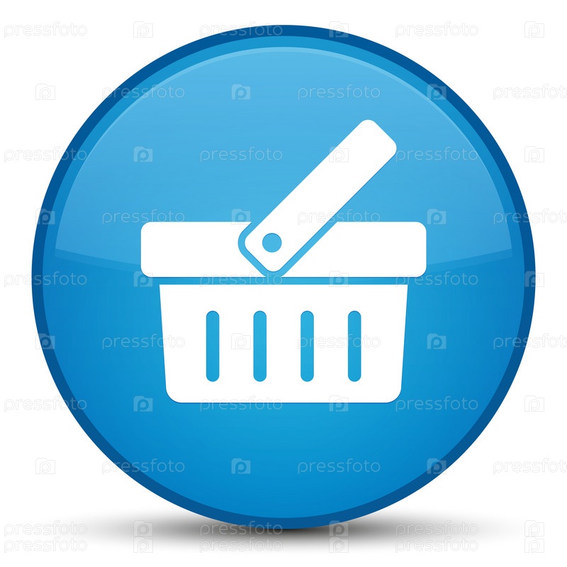 Икона корзины покупок специальная синяя цианская голубая круглая кнопка