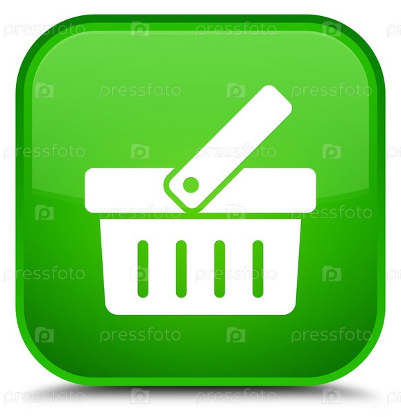 Икона корзины покупок специальная зеленая квадратная кнопка