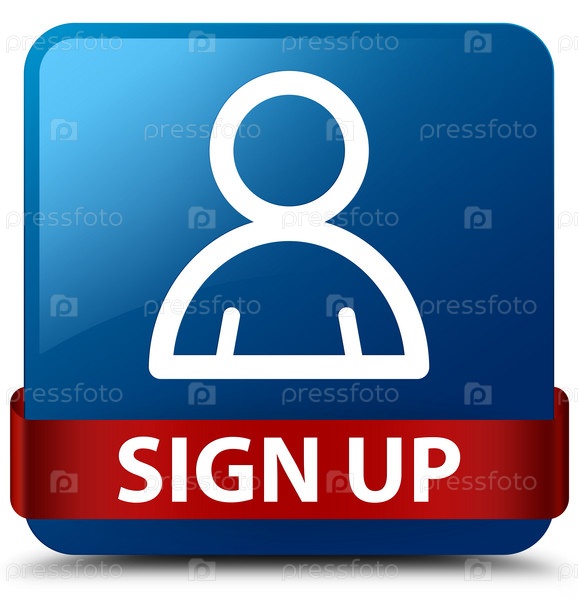 Зарегистрироваться (икона члена) синяя квадратная кнопка красная лента посередине