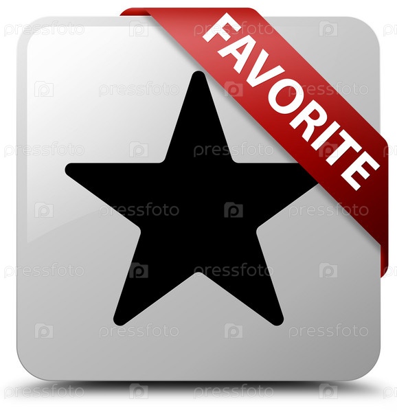 Любимое (икона звезды) белая квадратная кнопка красная лента в углу