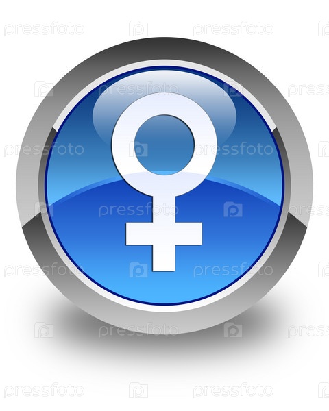 Женский знак икона блестящая голубая круглая кнопка