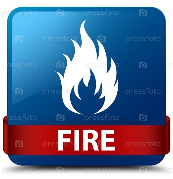 Огонь синий квадратный кнопка красная лента в середине