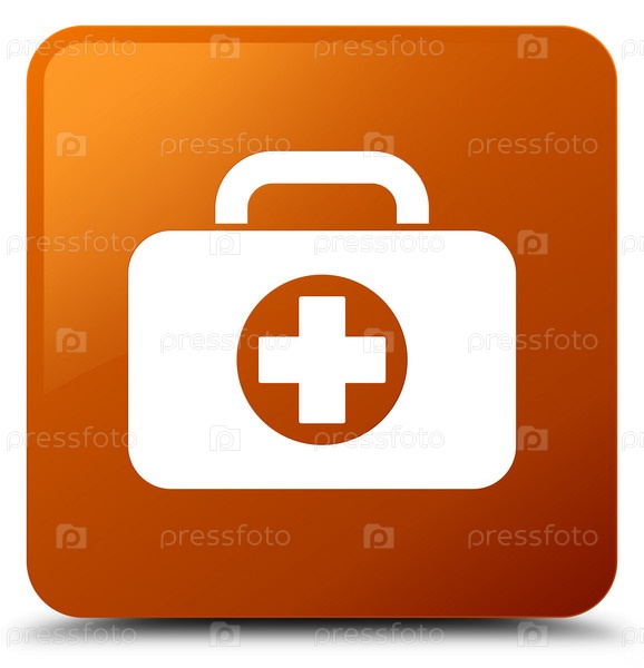 Иконка пакета первой помощи коричневая квадратная кнопка