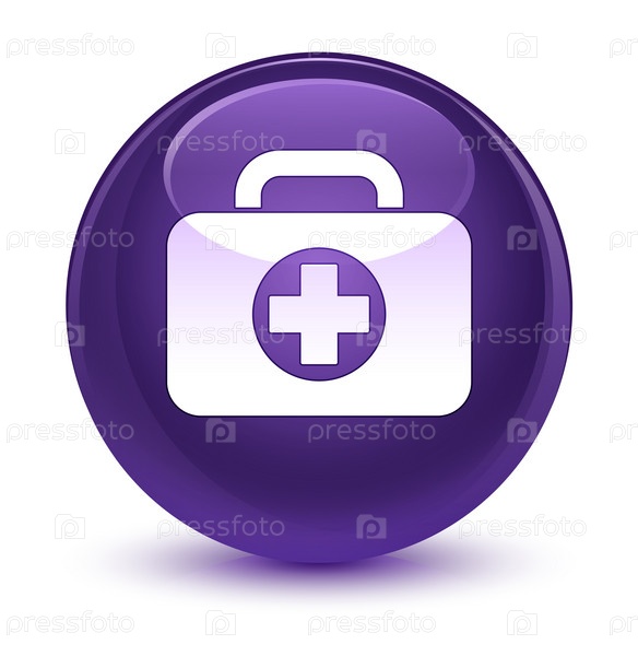 Икона пакета первой помощи стеклянный фиолетовый круглый кнопка