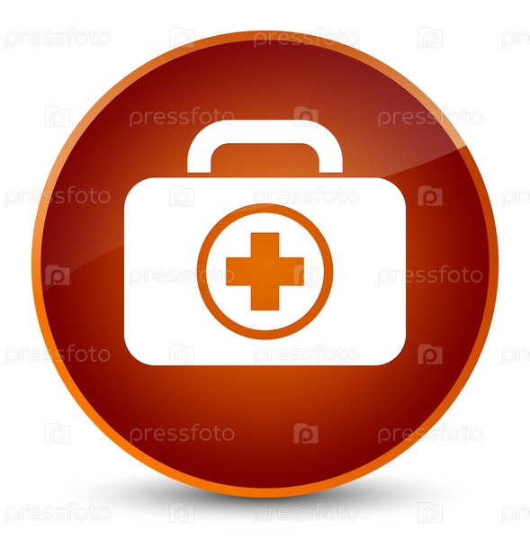 Икона аптечки первой помощи элегантная коричневая круглая кнопка