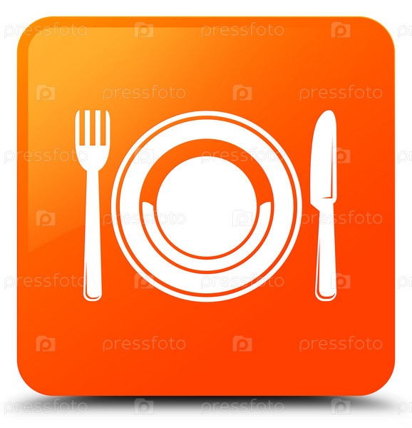 Икона пищевой тарелки оранжевая квадратная кнопка