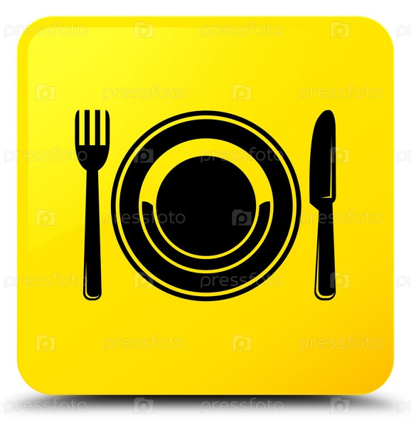 Икона пищевой тарелки желтая квадратная кнопка