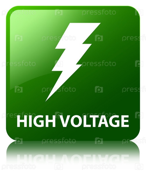 Высокое напряжение (икона электричества) зеленая квадратная кнопка