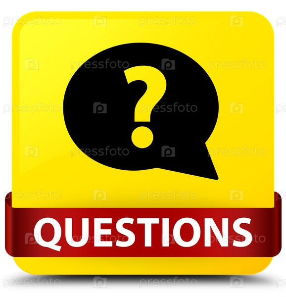 Вопросы (икона пузыря) жёлтая квадратная кнопка красная лента посередине
