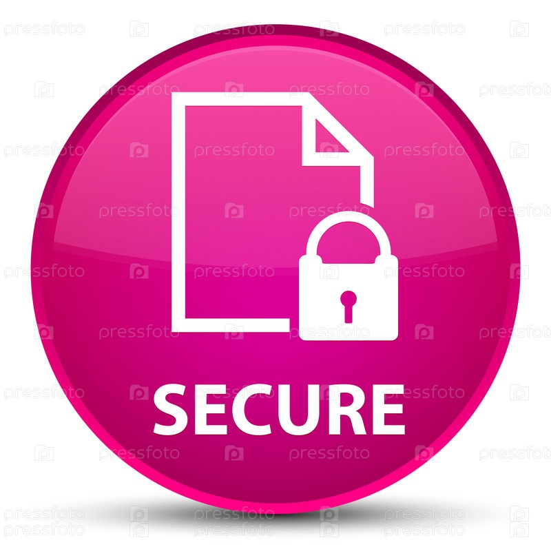 Безопасно (икона замка на странице документа) специальная розовая круглая кнопка