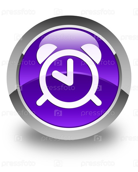 Икона будильника блестящая фиолетовая круглая кнопка