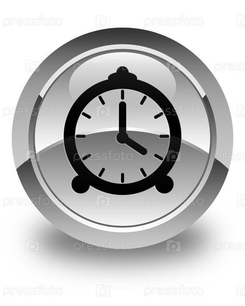 Икона будильника блестящая белая круглая кнопка