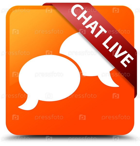Чат в прямом эфире оранжевая квадратная кнопка красная лента в углу