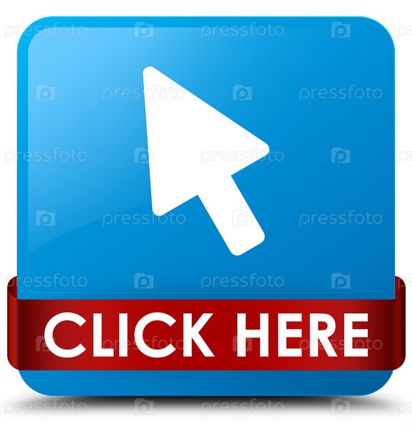 Click here cyan синий квадратный кнопка красная лента посередине