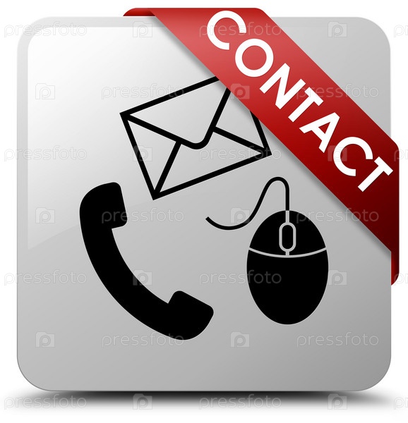 Контакт (электронная почта телефона и значок мыши) белая квадратная кнопка красная ленточка в углу