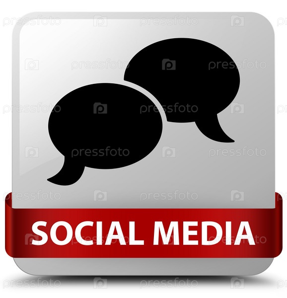Социальные сети (икона пузыря чата) белая квадратная кнопка красная ленточка посередине