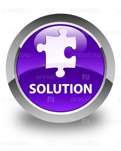Решение (икона головоломки) глянцевая фиолетовая круглая кнопка