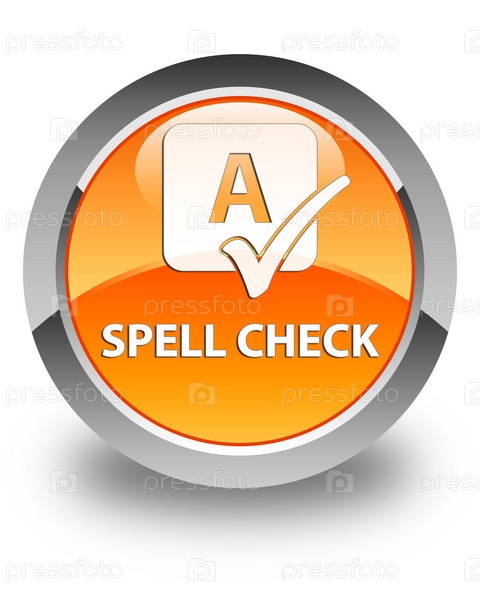 Проверка орфографии блестящая оранжевая круглая кнопка