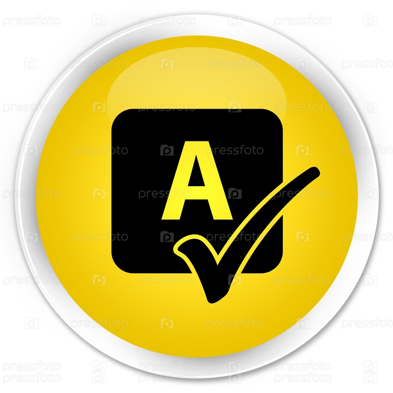 Икона проверки правописания премиум жёлтая круглая кнопка