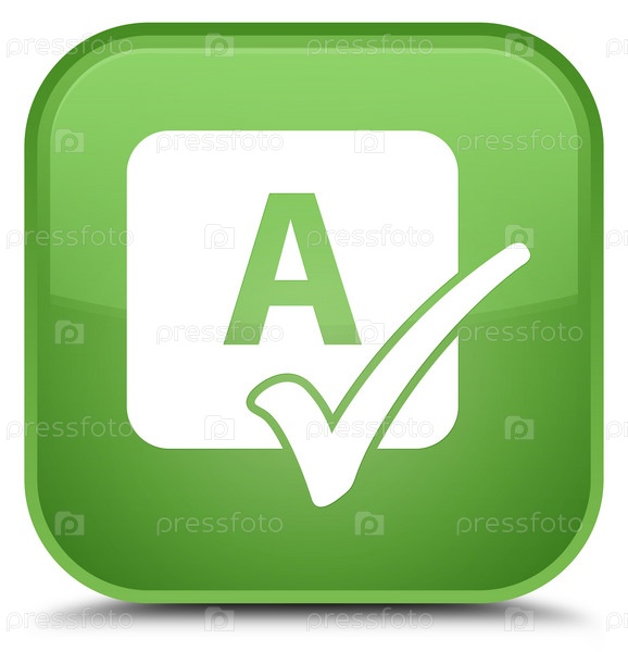 Икона проверки правописания специальная мягкая зеленая квадратная кнопка