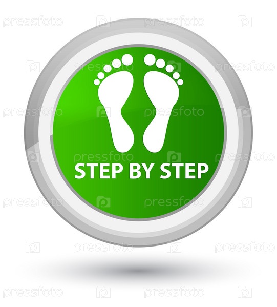 Шаг за шагом (икона отпечатков) первичная зеленая круглая кнопка