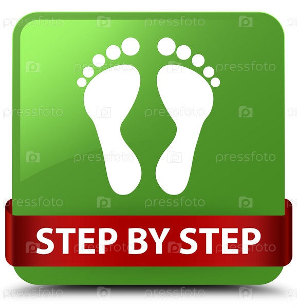 Шаг за шагом (икона отпечатков) мягкий зеленый квадратный кнопка красная лента посередине