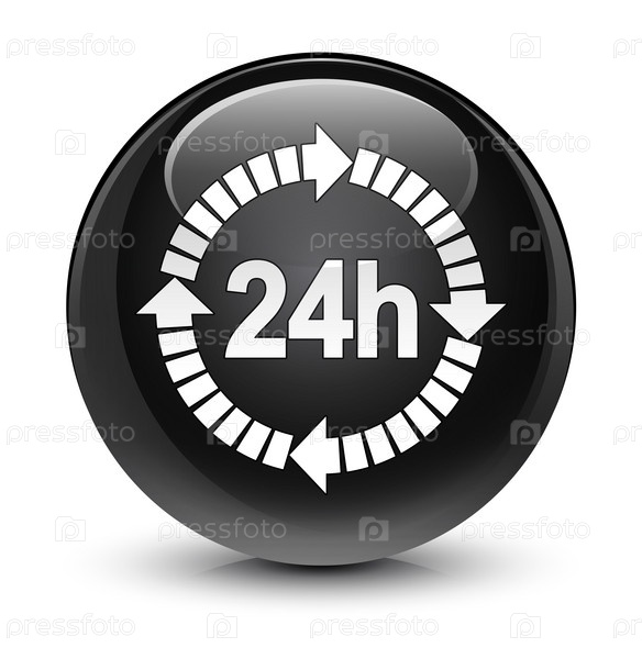 Икона доставки в течение 24 часов стеклянная черная круглая кнопка