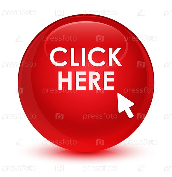 Нажмите здесь стеклянный красный круглый кнопка