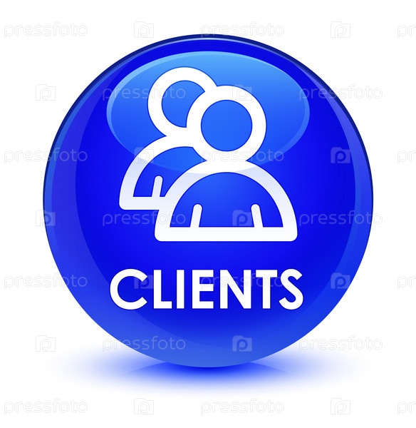 Клиенты (икона группы) стеклянная голубая круглая кнопка