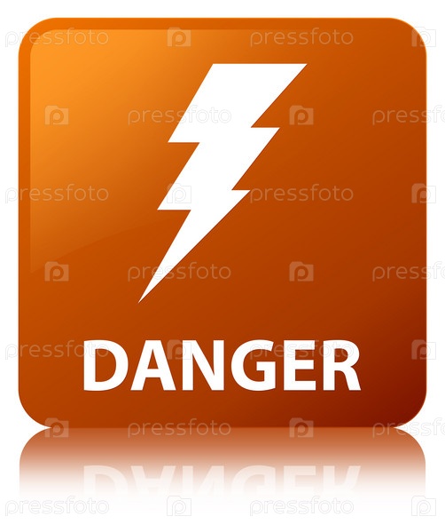 Опасность (икона электричества) коричневая квадратная кнопка
